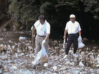 高槻西ロータリークラブは摂津峡の河原の清掃をお手伝いしました。慣れない手つきで空き缶・ゴミを拾い集めています。 | ![]() |