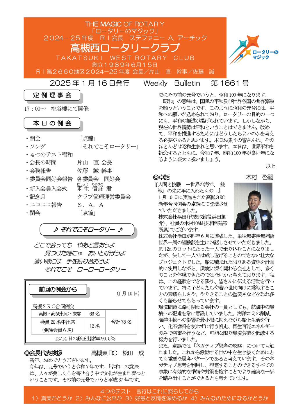2025年1月16日 週報1661号