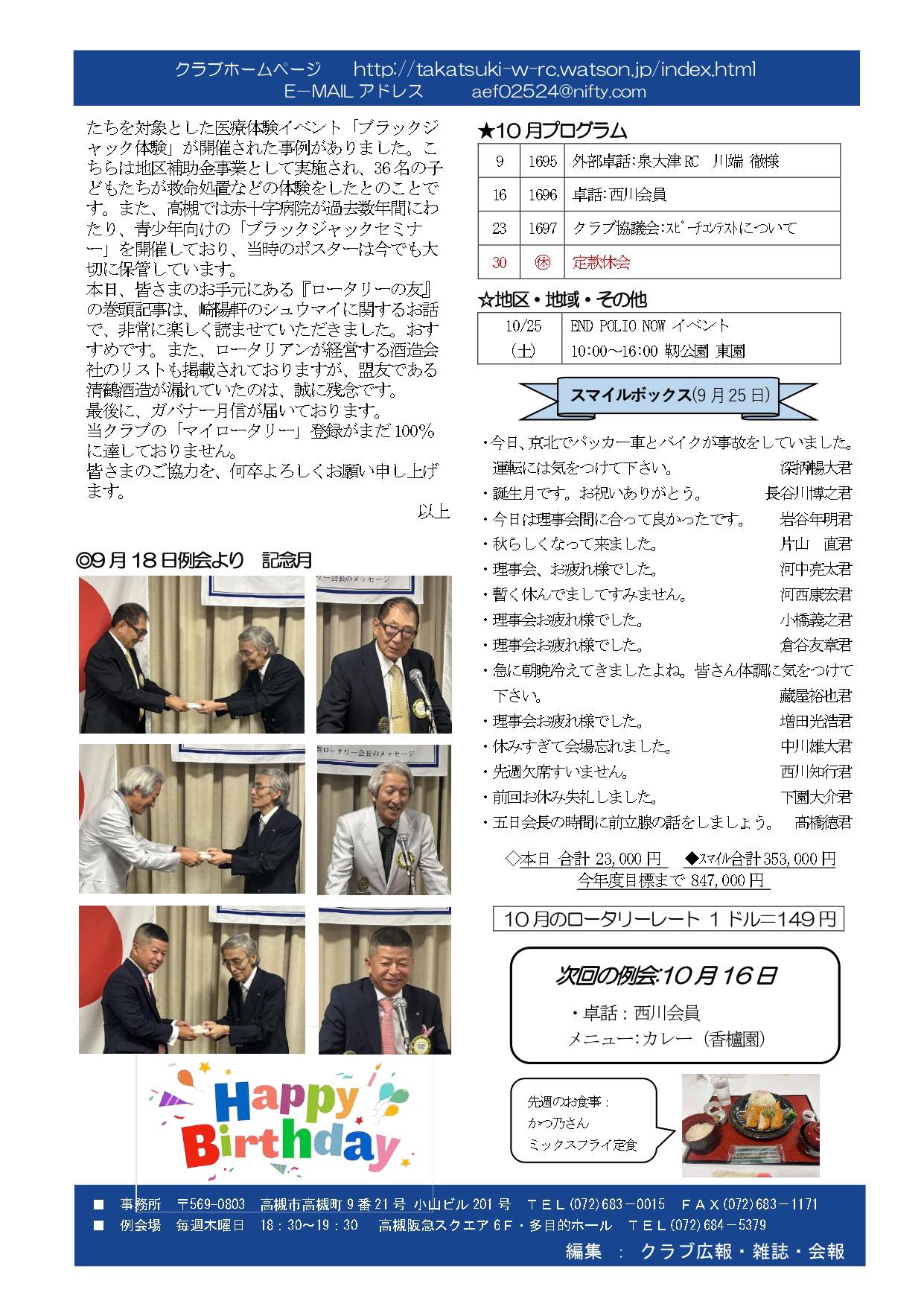 2025年 10月9日 週報1695号