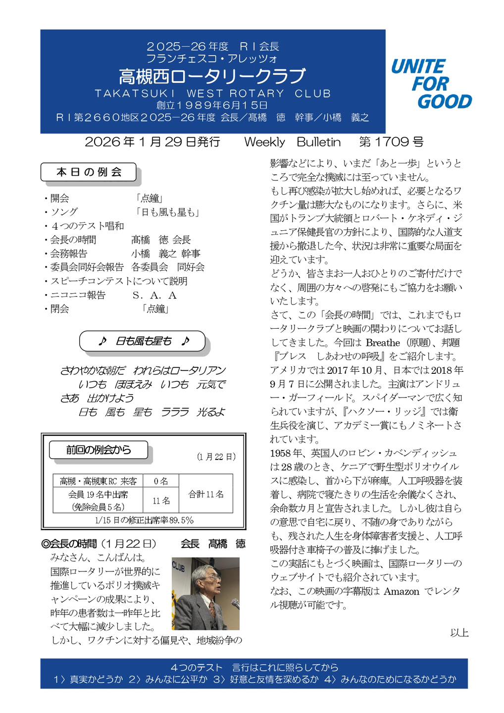 2026年 1月29日 週報1709号